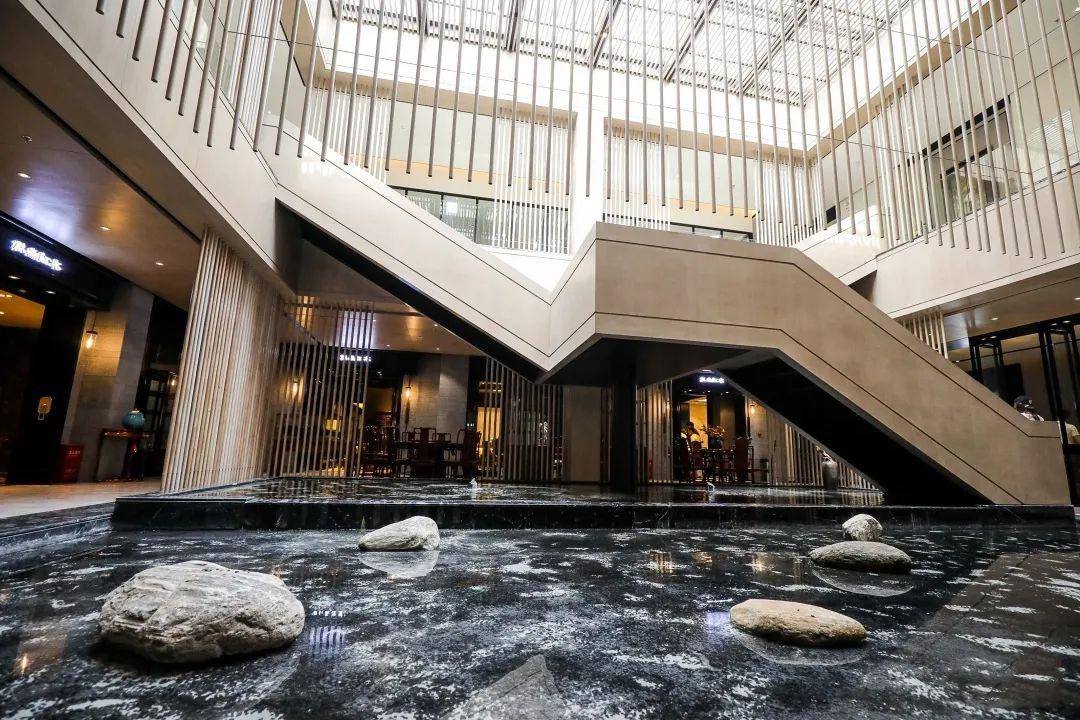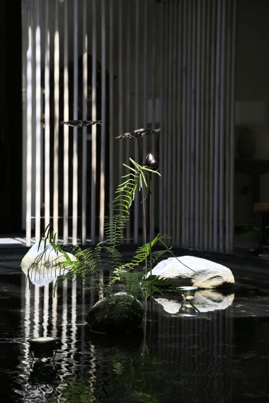 戴为生活馆一楼是家具展区,从天井里循环流动的水系到自然生长的绿植,每一处都饱含中国传统的风水哲学和吉祥美好寓意。