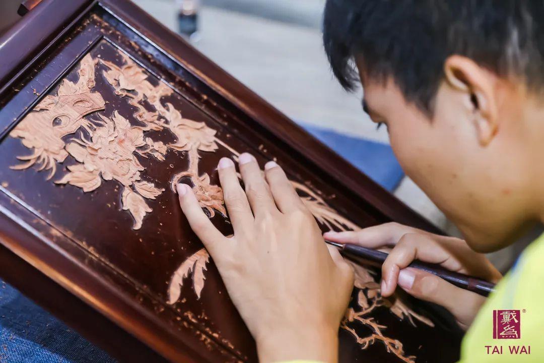 戴为生活馆的每一件家具,都是多维艺术品,在造型上绝对符合人体工学。在视觉上,用深雕、浮雕、透雕、双面雕等不同雕刻手法,将人物、山水、花鸟等图案雕刻在家具表面,寄托人们对美好生活的向往。