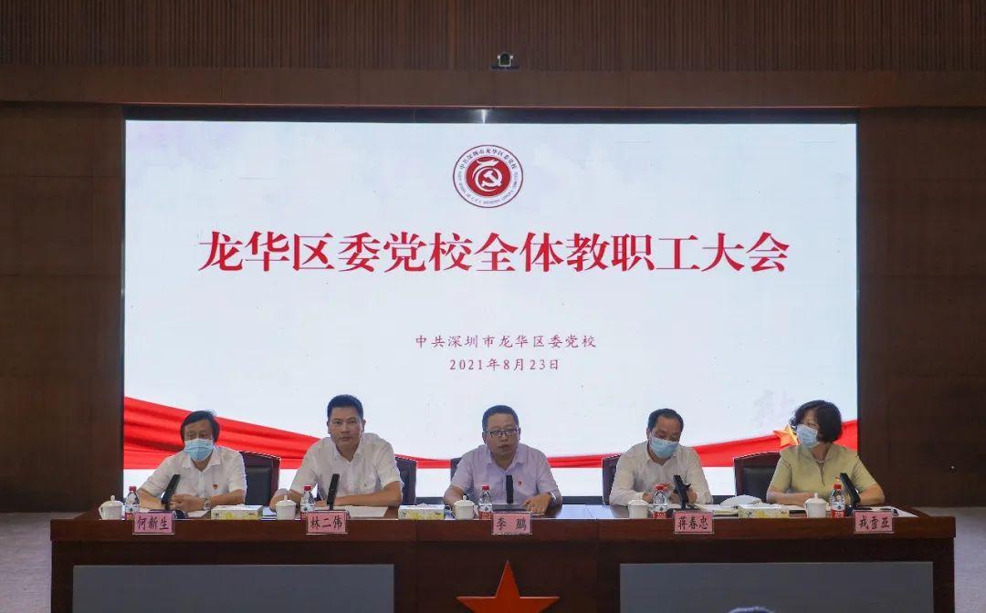 2021年8月23日下午,龙华区委党校召开全体教职工大会。区委党校常务副校长李鹏主持会议,校领导林二伟、戎雪亚、何新生分别总结部署了分管工作,区委组织部部务会成员、二级调研员蒋春忠最后讲话。