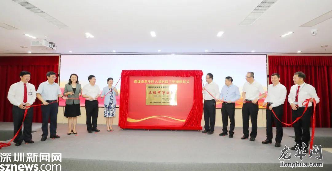 读特客户端·深圳新闻网讯 (记者 李昕阳 通讯员 廖静文 李道航 )8月26日上午,在深圳经济特区生日这天,龙华区人民医院举行“三甲”揭牌仪式,龙华区迎来了首家“三甲”医院,标志着龙华卫生健康事业跃上了一个新的台阶。广东省卫健委二级巡视员陈砺,深圳市卫健委副主任吕光华,龙华区委书记王卫,区委副书记、区长雷卫华,区领导刘蕾、韩荡、吴振兴共同为龙华区人民医院“三甲”揭牌。