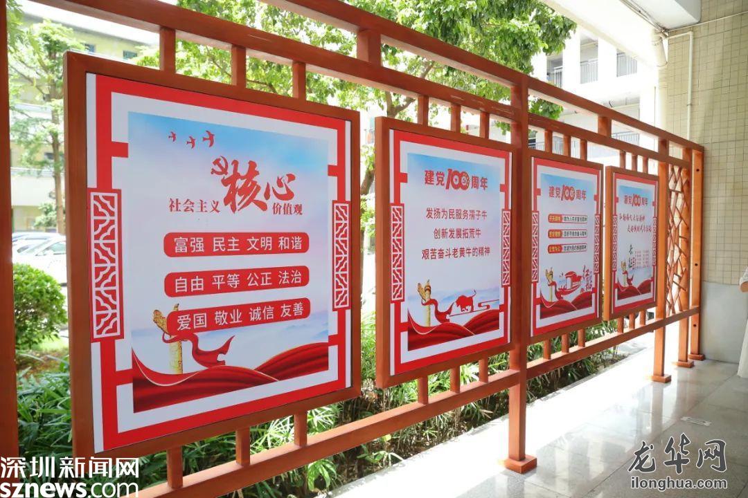 随后,黄启键一行来到观澜第二中学,检查该校是否在显眼处张贴中小学生守则以及校道宣传栏、教学楼架空层、教室等处的创文情况。