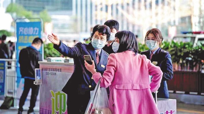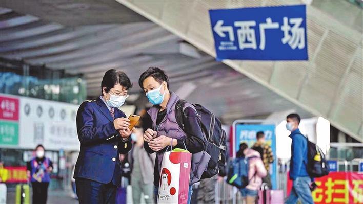 指引乘客前往高铁入站口。