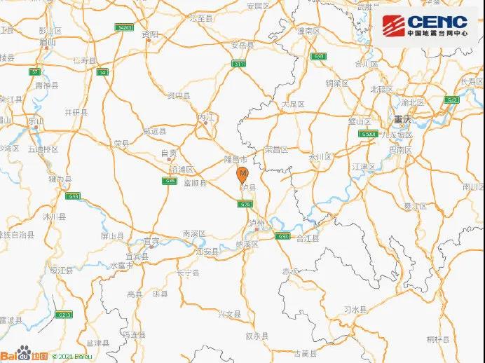 中国地震台网称,震中离最近的福集镇3公里,距泸县县城7公里,距隆昌市16公里、距富顺县36公里,距泸州市38公里,距成都市196公里,距重庆市124公里。