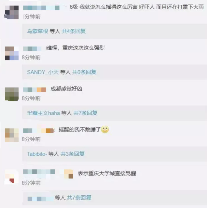 成都、重庆等多地震感明显,有不少网友称被地震晃醒。