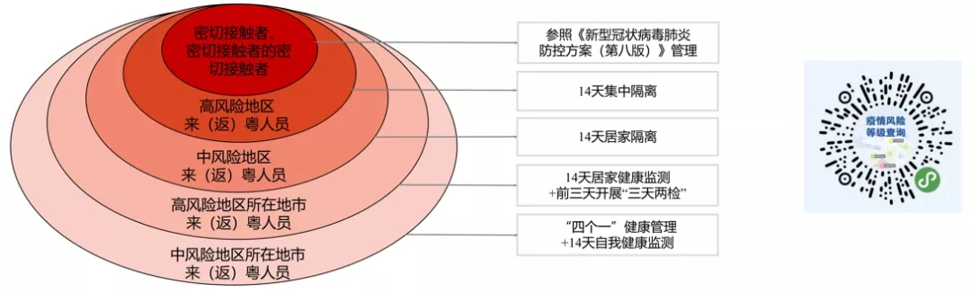 密切留意疫情走势。返回后若您发现近14天到过中高风险地区以及有本土疫情报告的城市、与阳性人员同乘交通工具或活动轨迹有交集请主动向社区报备,并配合做好疫情防控措施。具体防控措施参照下图。