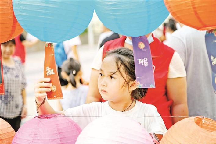 “中秋节就应该猜灯谜呀!”9月12日上午,一个小朋友在陶吓社区祠堂广场参与了“执廉洁之风·相约浓情九月”廉洁宣传暨中秋节游园活动;该街道陶元社区将党风廉建和中秋佳节相结合,寓教于乐,为即将到来的中秋节增添节日氛围。