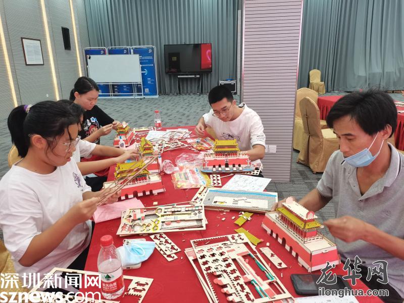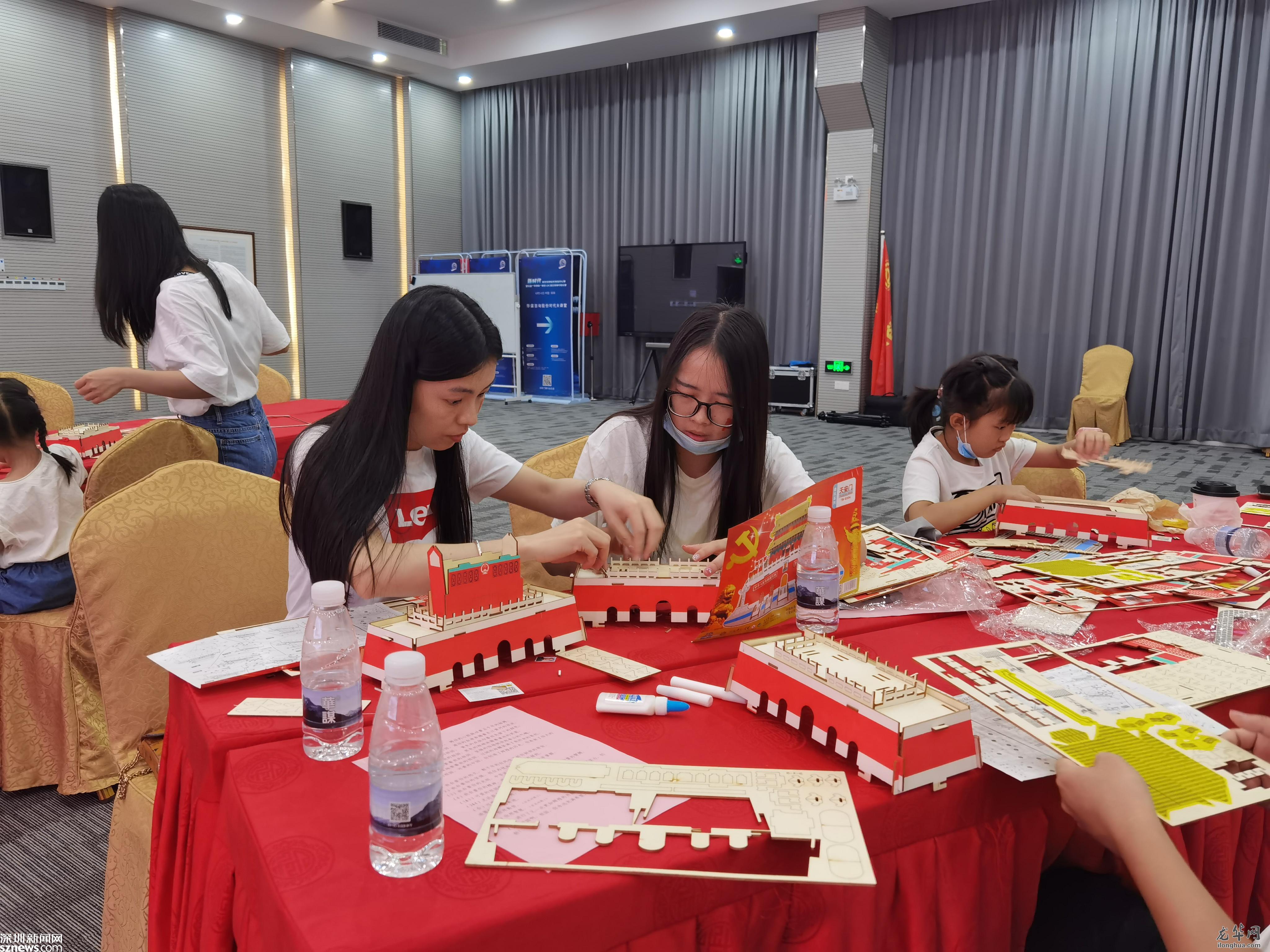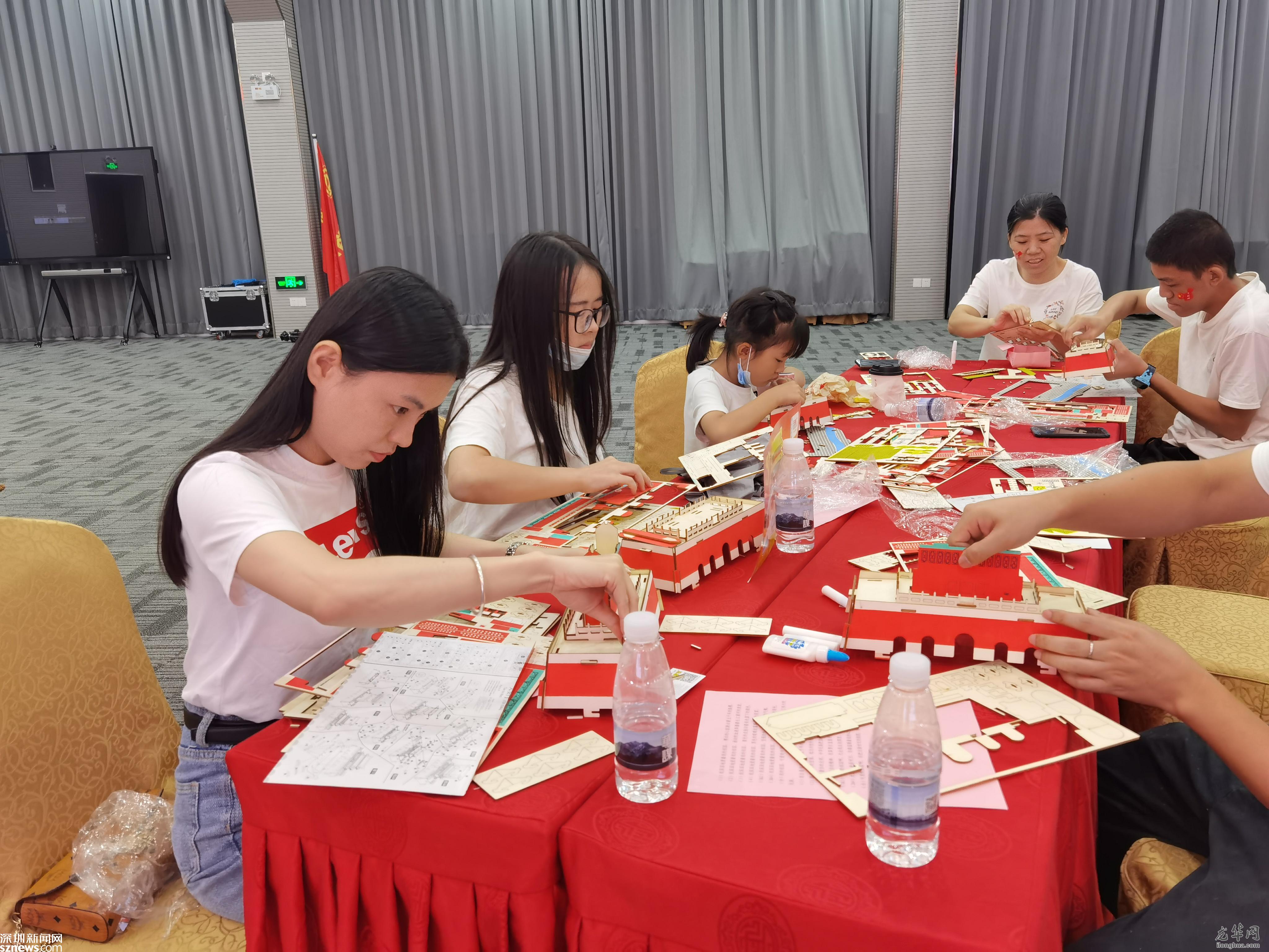 近200个木质的小零件,在经过取出、按压、胶水粘连等一系列操作后,有的人手已经磨破皮,但是没有人停下来,经过一小时的不懈努力,一个个立体的天安门模型呈现在大家面前,心满意足的笑容在每一个脸上绽放。“这个天安门好漂亮,感觉自己置身在城楼下!”“黄色琉璃瓦、五星红旗、金水桥……这是我印象中的天安门。”“自己亲手做的很有成就感,如果前面有升旗杆就好了,我一定要去天安门看升旗仪式。”一位企业员工认真地说。“我还是学生时去北京看过天安门,知道来拼装天安门城楼模型,我特别激动。我要把它摆在客厅,让大家都来参观。”华谋咨询团支书孙先生开心地说。活动最后,孙先生带领团员青年们参观企业的展示区,从最初的手工作坊到现在高科技的现代化设备,青年无不感叹科技发展的强大,也感受到祖国从站起来到富起来、强起来的发展变化。