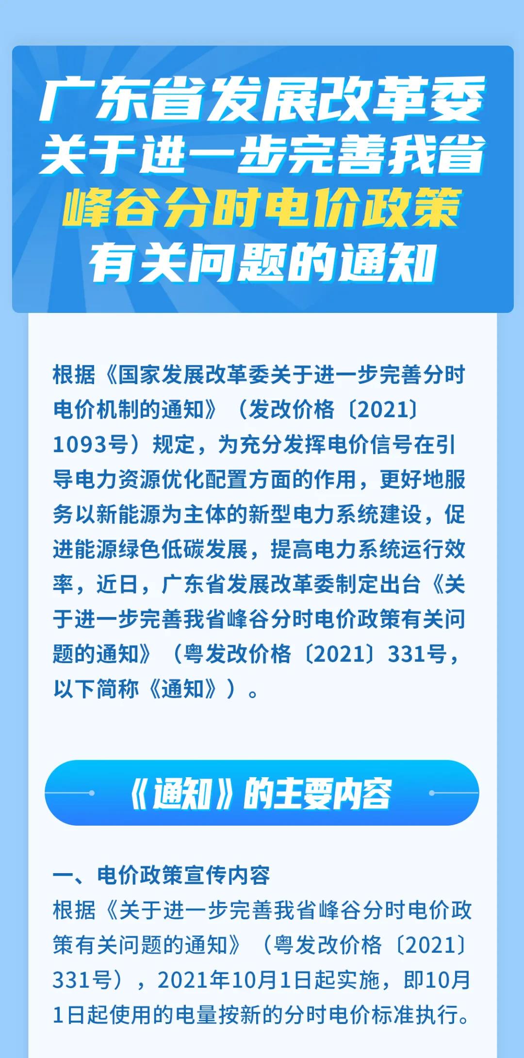 该《通知》主要对峰谷分时电价政策作了进一步完善。广东省峰谷分时电价政策实施范围维持不变,即包括大工业用户、普通工业专用变压器用户,国家和省对部分用户执行峰谷分时电价政策有专门规定的按其规定。居民用户可自主选择是否执行峰谷分时电价政策。下一步视情况将峰谷分时电价政策扩大到其他工商业用户。