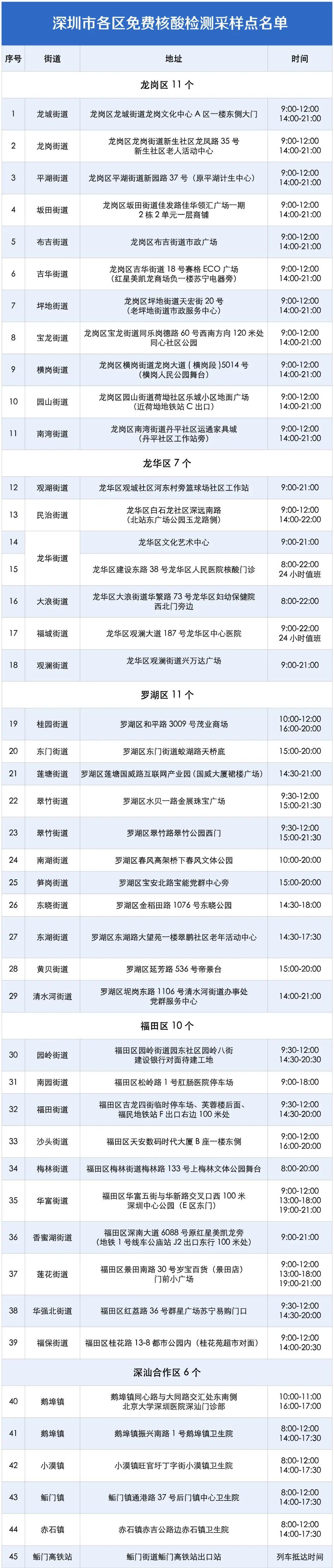 全市免费核酸采样点免费开放服务于所有返深人员的核酸检测,按照大规模核酸筛查10混1采样,为期一天(10月7日)。