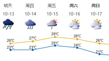 15日多云,有分散阵雨。16-17日受冷空气影响,风力增大,气温下降,早晚清凉。