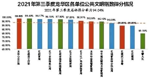 第三季度,龙华区大力开展“三整治三创新六提升”、社区文明周等活动,落实“环境长”、“环境清洁日”等常态化工作机制,全区文明水平整体向好。测评显示,人际交往考察项得到满分,说明公共场所人们热情、友善、文明,社会文明氛围较为浓厚。具体测评点位方面,龙华出入境大厅满分,银行网点、小学、长途汽车站、大型超市、火车站、政务大厅等点位基本满分。市容环境和市容秩序整体上有所提升,城中村、背街小巷、农贸市场等点位等的环境卫生状况明显好转,杂物堆积、乱扔垃圾、环境脏乱差等现象有所减少,各场所垃圾分类设施和垃圾收运体系不断完善,公共场所不文明养宠、市民不文明行为、基础设施破坏等现象减少。但是,全区在公共环境、交通秩序、公益广告覆盖、城市精细化管理等方面仍然存在短板。