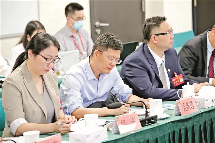 在区政协二届一次会议第四讨论组,政协委员认真记录。