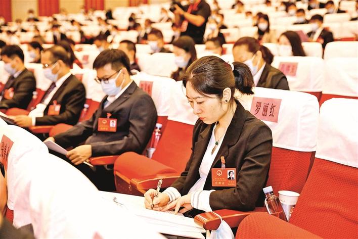 10月17日上午,在区二届人大一次会议开幕会上,区人大代表认真做笔记。