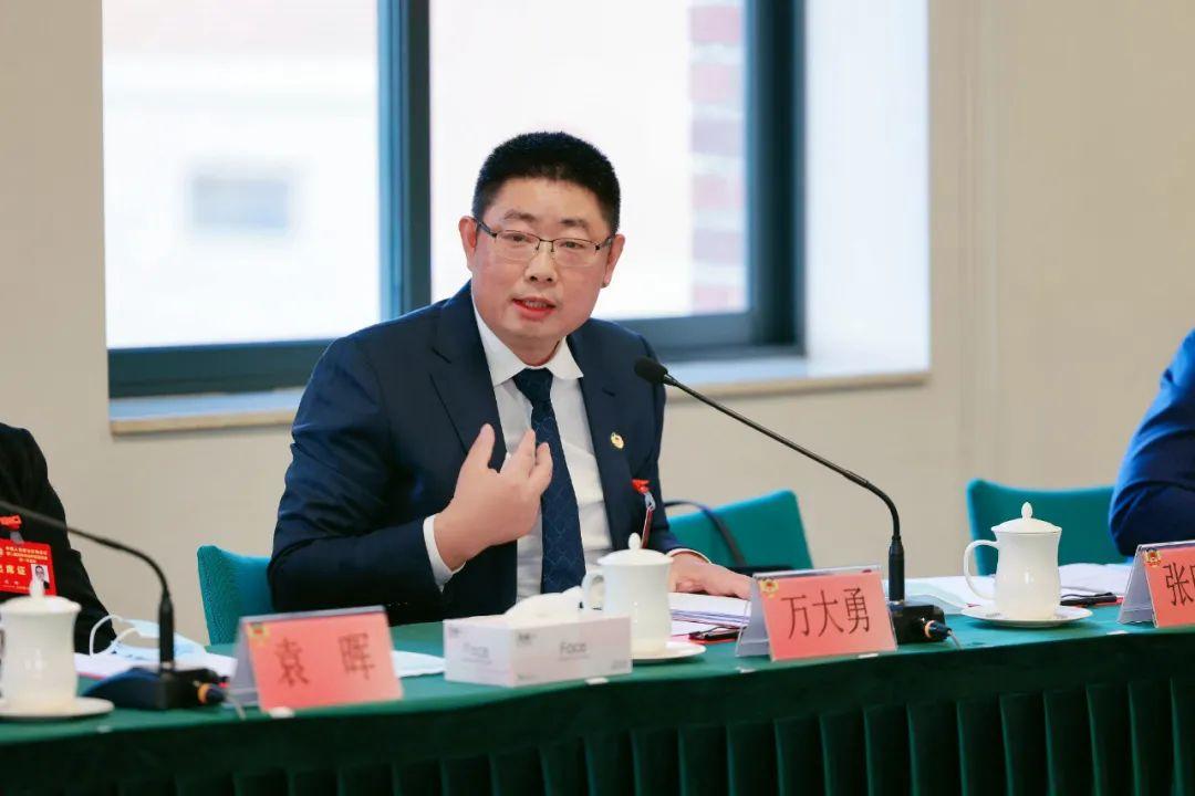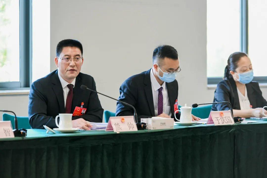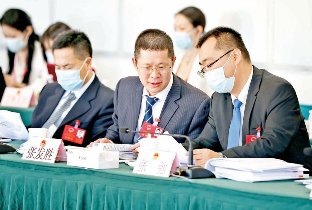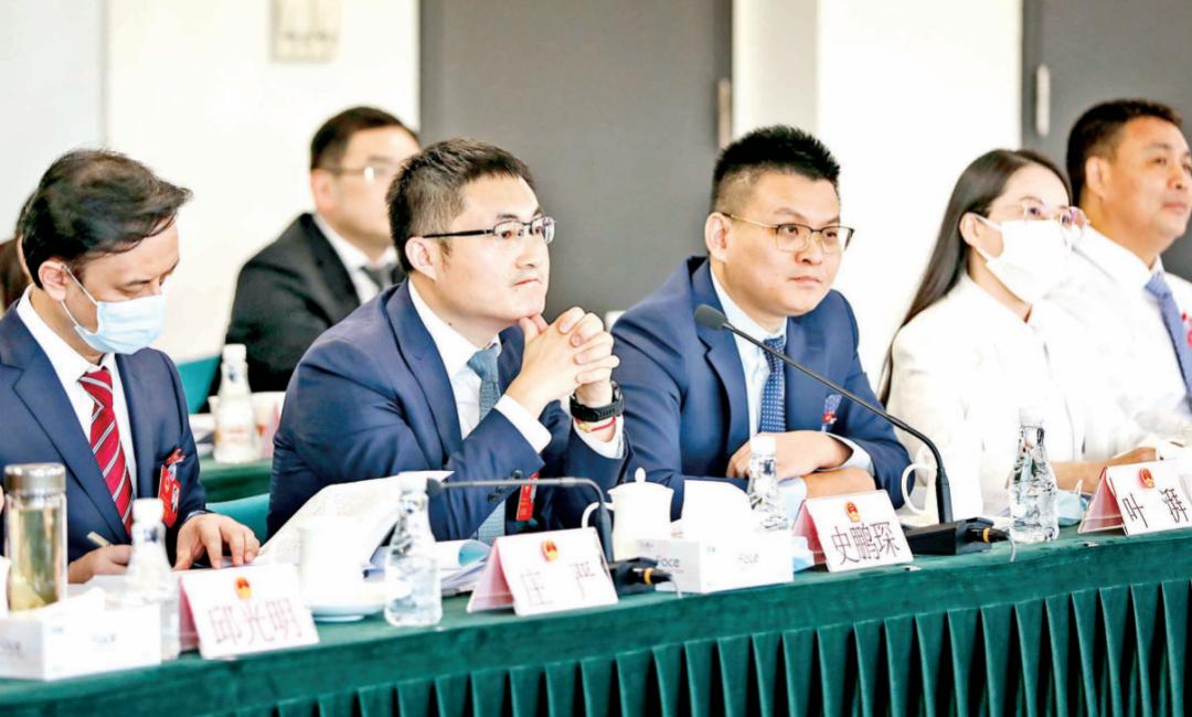 张发胜代表(前排右二)与张弛代表(前排右一)交流。