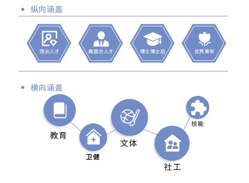 该政策纵向覆盖顶尖人才、高层次人才、博士博士后、优秀青年等群体,横向涵盖教育、卫健、文体、社工、技能等领域。
