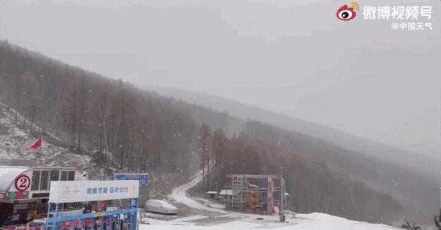 △11月2日早上,河北省张家口市崇礼区已飘雪。来源:@中国天气