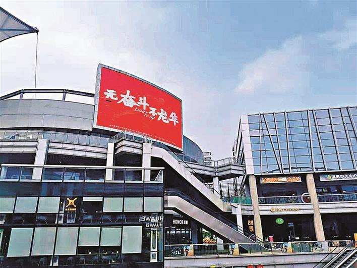 观澜湖新城户外电子屏上显示“无奋斗不龙华”。