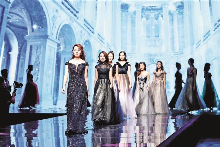 随着音乐响起,盛装打扮的“模特”们相继从后台走出,迎着绚丽的效果灯,昂首挺胸,款款走向T台尽头。结合各自服装特色,或冷艳,或和煦,或单手叉腰,或双臂环胸,亭亭玉立,婀娜多姿,凭借他们超强的舞台表现能力,将各种服装的特色体现得淋漓尽致。