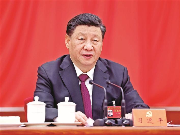 中央委员会总书记习近平在党的十九届六中全会上作重要讲话。新华社发
