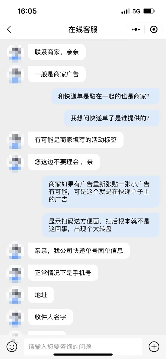 针对快递单上印广告一事,记者联系了某快递企业的客服,有客服人员表示,一般是商家广告,有可能是商家的活动标签。