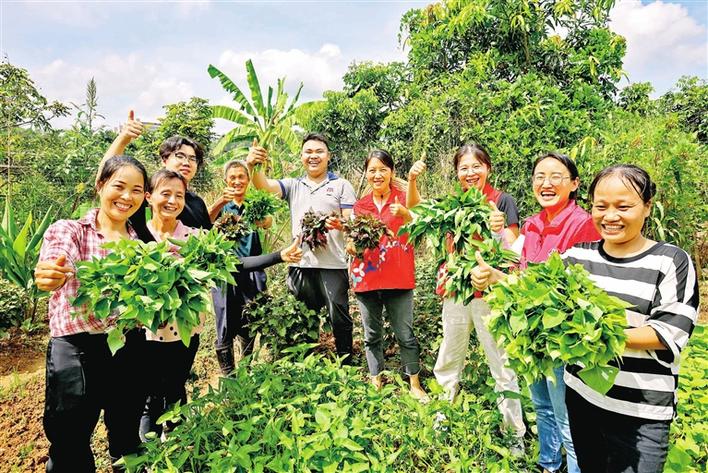 志愿者和爱心市民在章阁爱心农场采摘自己种植的新鲜蔬菜,收获满满。