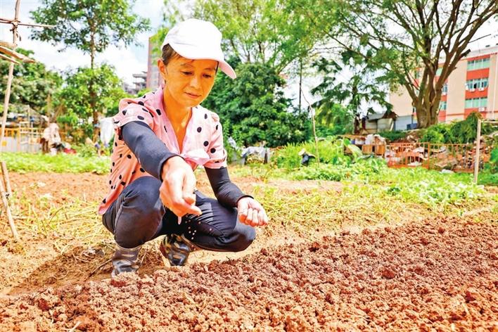 爱心市民在农田里播撒爱的种子。