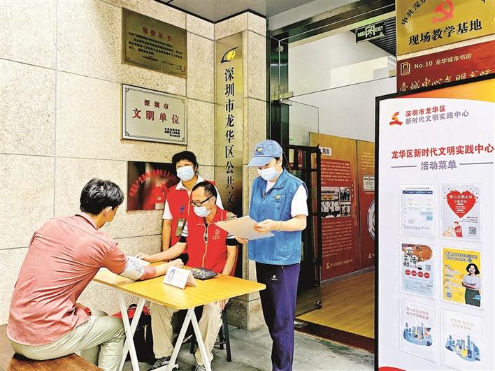 每天都有400余人次的龙华志愿者,在全区各社区、公共文化设施、景区景点、火车站、长途汽车站、政务大厅、医院等开展创文志愿服务。在龙华团区委指导下,各社区、公共文化设施、景区景点、医院、交通场站、政务大厅和新时代文明实践中心等场所的主导单位,常态化提供志愿服务,做到“有标识、有人员、有台账、有制度”的“四有”标准。