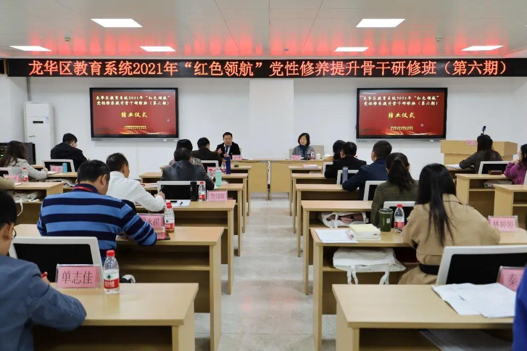●2021.11.23●从春和三月到瑟瑟冬月,龙华区委教育工委、区委党校聚焦“未来教育家工程”“名师领雁工程”“博士精英团”“夯基提质工程”、第一书记等优质人才,连续举办了六期龙华区教育系统2021年“红色领航”党性修养提升骨干研修班。3月17日,第一期红色领航班开班11月19—23日,成功开办第六期红色领航班整个培训深入学习贯彻习近平总书记七一重要讲话和党的十九届六中全会精神、区第二次党代会和区“两会”精神,着力提升派驻民办学校第一书记、公民办学校党建中层干部(含党建联络员),党建副书记等党建干部的党建能力和党性修养。区委教育工委办公室主要负责人、教育局关工委副主任、办公室主任魏书杰,区委党校董旭以及全体学员参加