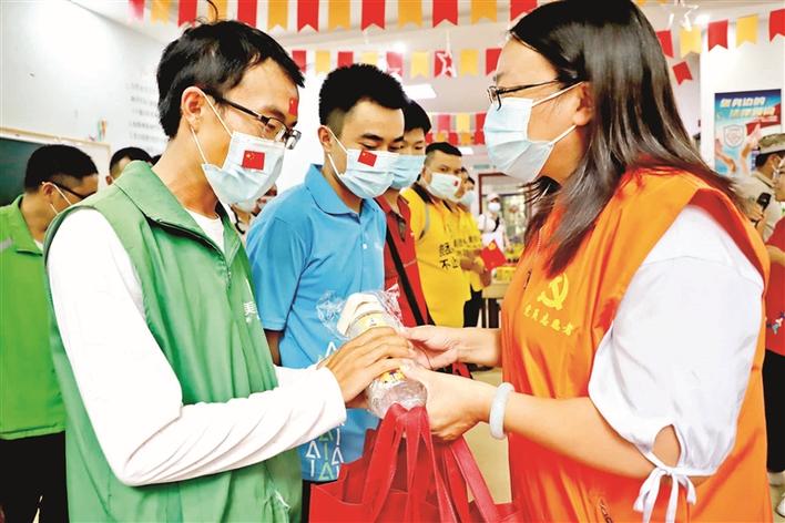 福城茜坑社区党委为快递小哥送上关爱礼包。