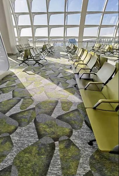 卫星厅环境布置软装极具巧思与美感,四个指廊地毯分别取“春夏秋冬”主题色彩布置,设有候机座椅6000余张。