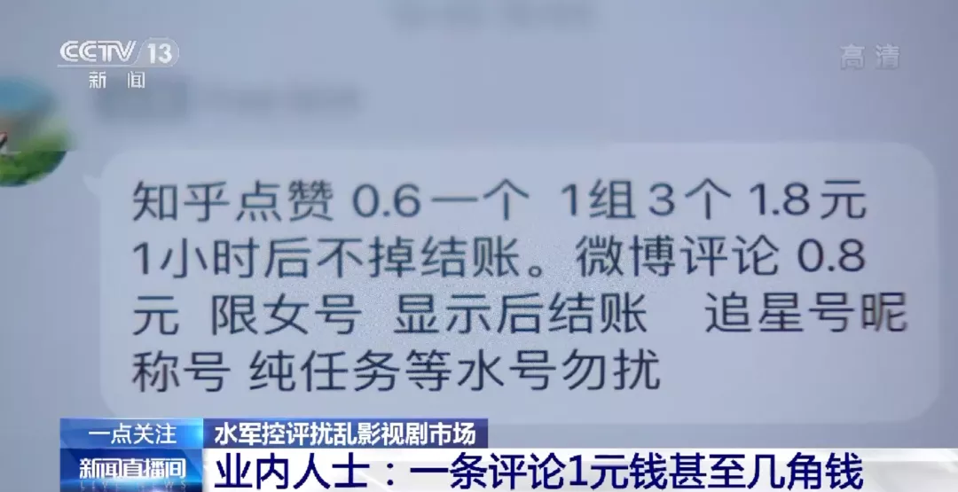 央视新闻2021年12月14日讯 如今,很多人习惯在观看影视剧后去网络平台上进行打分和点评,这也为还没有观看的网友们提供参考。然而,日前有两部影视剧却接连出现了“超前点评”的荒诞一幕——影视剧还未播出,网上就已经有大量评分出现。 来源:视觉中国 影视剧遭遇“未看先评” 几角钱就能吸引水军接单“控评” 12月1日,某古装剧在互联网平台上线。由于一些原因,该剧的正式上线时间比原来的“官宣”时间晚了近一个小时。然而,在某知名打分平台的短评打分区,有大量评分在原定上线时间集中涌入,这些短评呈现一星和五星两极分化的状态。 无独有偶,在12月5日首播的某部网剧中,女主演尚未登场的前两集播出后,网络社交平台上同样准时涌现了大量质疑其演技、台词的论调和一星短评。 两部影视剧出现的“超前点评”现象被网友和媒体质疑为水军刷分“控评”。记者以粉丝身份进入某水军派单群,发现频繁有人发出招聘兼职刷分“控评”的信息。一条1元钱甚至几角钱的价格,能吸引大量水军接单进行“控评”。 业内人士指出,水军刷分“控评”打破了“先看作品再打分”的基本规则,不仅会对影视作品的口碑和观看数据产生不利影响,导致制作公司经济受损,也会破坏打分平台的客观性与公信力,甚至影响正常的文艺评论。 影视剧“控评”或涉嫌违法 此外,水军对影视剧“控评”的行为还有可能涉嫌违法。 今年2月,有网友在国家市场监督管理总局官网上留言咨询:“电视剧‘控评’是否合法?”对此,官方回应称,“控评”涉嫌违反《反不正当竞争法》。可提交充足证据材料,向县级以上市场监督管理部门举报,也可直接拨打12315或登录12315互联网平台,进行申诉举报。 网信办近年来也出台了多项规定,对网络“水军”的刷帖“控评”行为也都有较为细化的规制。 中国政法大学传播法中心研究员、副教授 朱巍:在“控评”的过程中,水军表面上看是侵害了正常的传播秩序、市场经营秩序,严重的话可能涉及非法经营罪,有刑事法律进行规制。 多方合力整治 还文艺评论清朗环境 今年2月,国家网信办开展了“清朗·春节网络环境”专项行动,其中一项内容就是重点整治刷量“控评”行为。 此外,专家指出,平台方也应加大应对力度。同时,应提高影视机构营销推广行为的透明度,并对网友进行正向引导。 中国传媒大学戏剧影视学院教授、中国文艺评论家协会理事 戴清:我们需要提升主流文化的影响力,营造健康的文娱环境,要积极引领粉丝文化的良性发展,包括提升年轻人的审美素养,加大引领力度和影响力度。 ▌本文来源:央视新闻微信公众号(ID:cctvnewscenter) 监制/李浙 主编/米莎总台央视记者/许盼盼 周琨 董良言 刘豪
