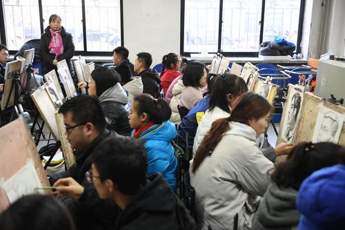 2019年1月18日在兰州城市学院,考生参加美术类艺考。新华社记者 范培珅 摄