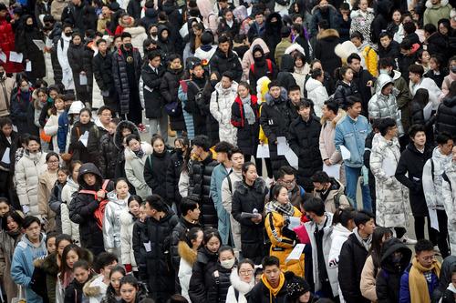 2019年2月12日,中央戏剧学院2019年本科招生专业考试在东城校区拉开帷幕,考生排队准备进入考场。新华社记者 才扬 摄
