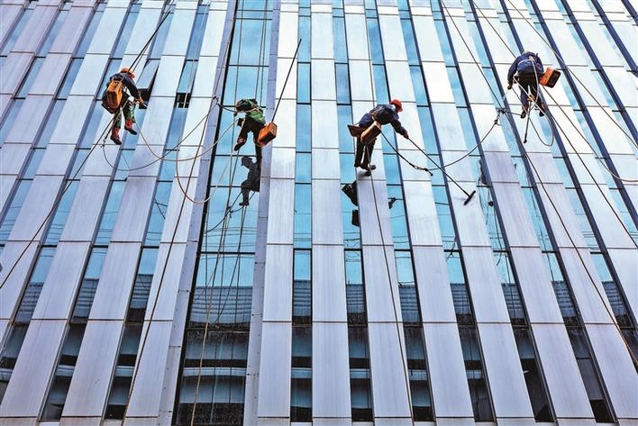 “精神抖擞,威武霸气。帅气的制服和酷炫摩托的身影无处不见,文明执法,最优服务,他们是市民心中可靠的守护者。”国家二级摄影师赖银辉谈到作品《闪亮的龙华铁骑》时,言语间对执法人员充满敬畏之情。在他看来,影像是时间的化石,好的影像会在历史深处发出自己的声音,不仅是时代最生动的记录,还传递着温度和情感。徐田华的《工地交响乐》摄于大浪街道龙胜社区,工地上的建设者们干得热火朝天。他将钢筋的斜线条和电焊师傅们作为拍摄主体,电弧焊的火花和青烟使画面显得生机勃勃。“这是在深圳北站,几个高空作业的师傅像电影里的蜘蛛侠,从天而降,给外墙玻璃清洗卫生。”在介绍作品《蜘蛛侠》时,徐田华感慨道,正是这群平凡的工作者,将我们的城市清洗得干净漂亮。