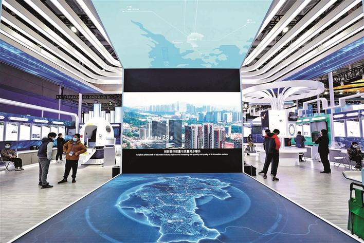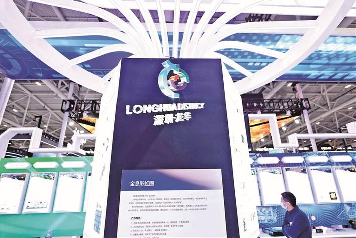 开幕当天,记者来到位于深圳国际会展中心(宝安)9号馆9C30展位的龙华展馆“探营”,现场看到不少观众驻足拍照,兴奋地体验龙华酷炫新科技。据悉,本届龙华展馆以“数字龙华,都市核心”为主题,主要围绕龙华中轴新城定位进行设计搭建,以深圳北站造型元素为设计核心,整体运用燃动红、科技蓝和未来白的色彩搭配,给观众呈现出龙华的奋斗精神、科技创新和发展活力。展馆在布展方面,围绕龙华区的社会经济发展情况和一圈一区三廊发展规划,通过融合图、文、音、像等多样化媒体形式,全面展示龙华区战略前沿领域的重大突破、科技创新的最新成果、完备的创新创业平台、重点科技产业空间布局、优良的创业营商环境等。