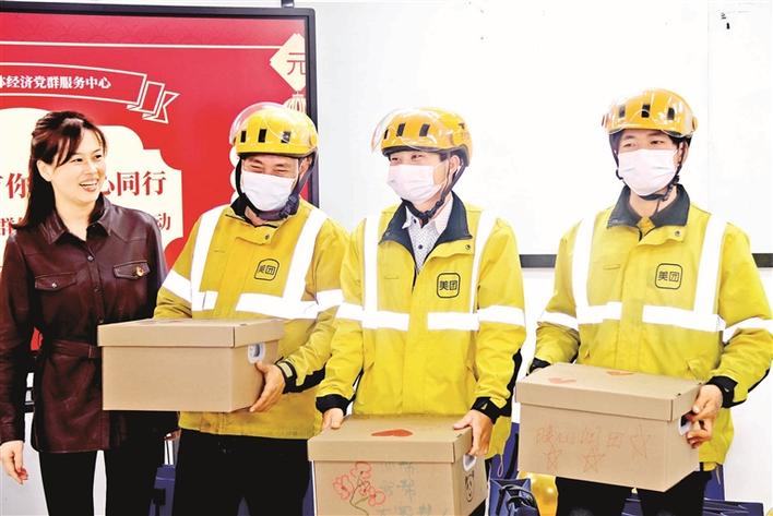 结对双方为灵活就业群体和困境家庭赠送“暖心盒”。