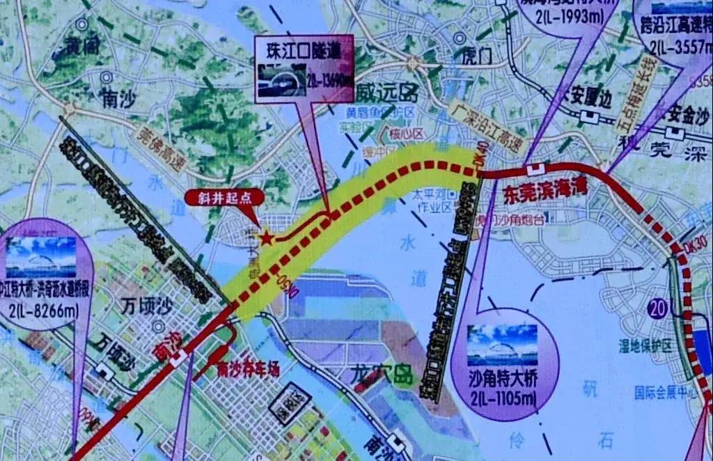 深江铁路以隧道下穿珠江入海口,设计为单洞双线高速铁路隧道,盾构机开挖直径13.42米,隧道最大埋深106米——