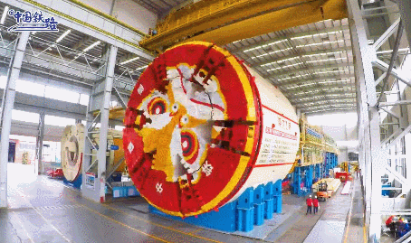 “深江1号”盾构机总长130米,重3800吨,刀盘涂装“醒狮”元素,极具广东地域文化特色。