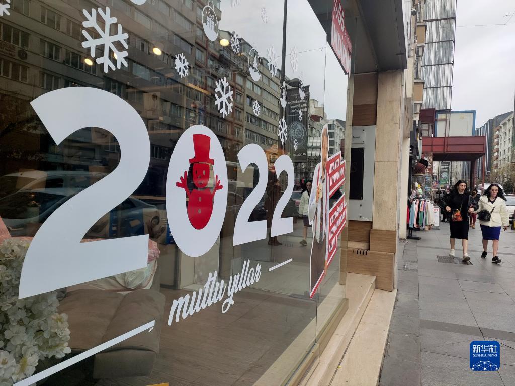 这是12月29日在土耳其伊斯坦布尔街头拍摄的“2022”标识。