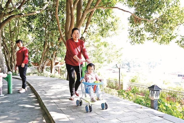 居民在上芬社区公园遛娃。