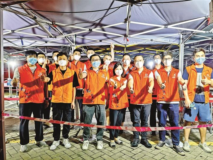 凌晨,支援社区抗疫人员完成检测工作后合影。