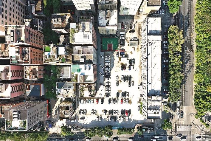 改造的停车场十分便民。(航拍图)