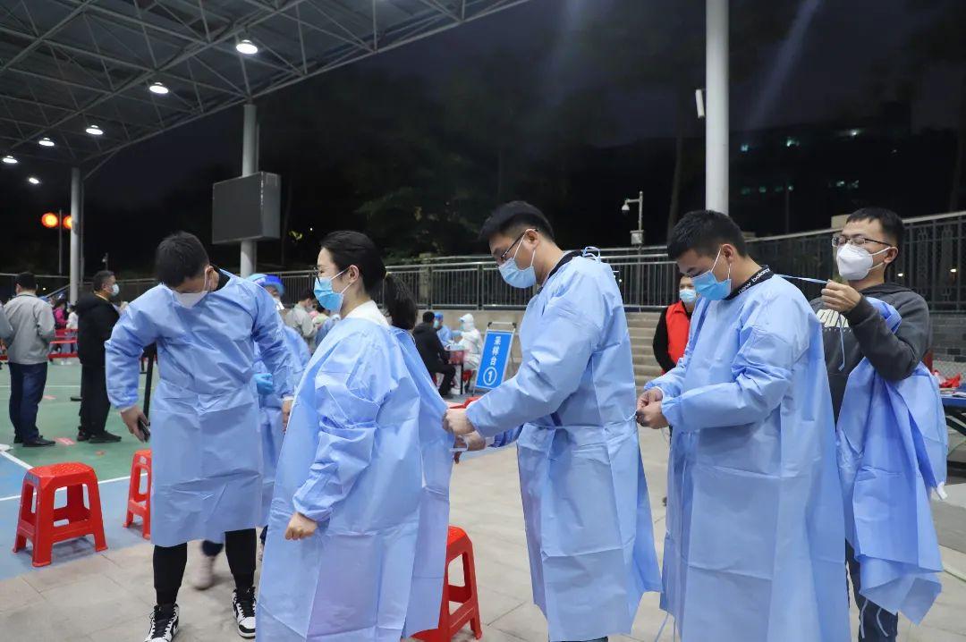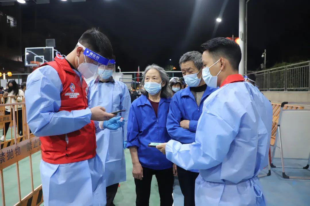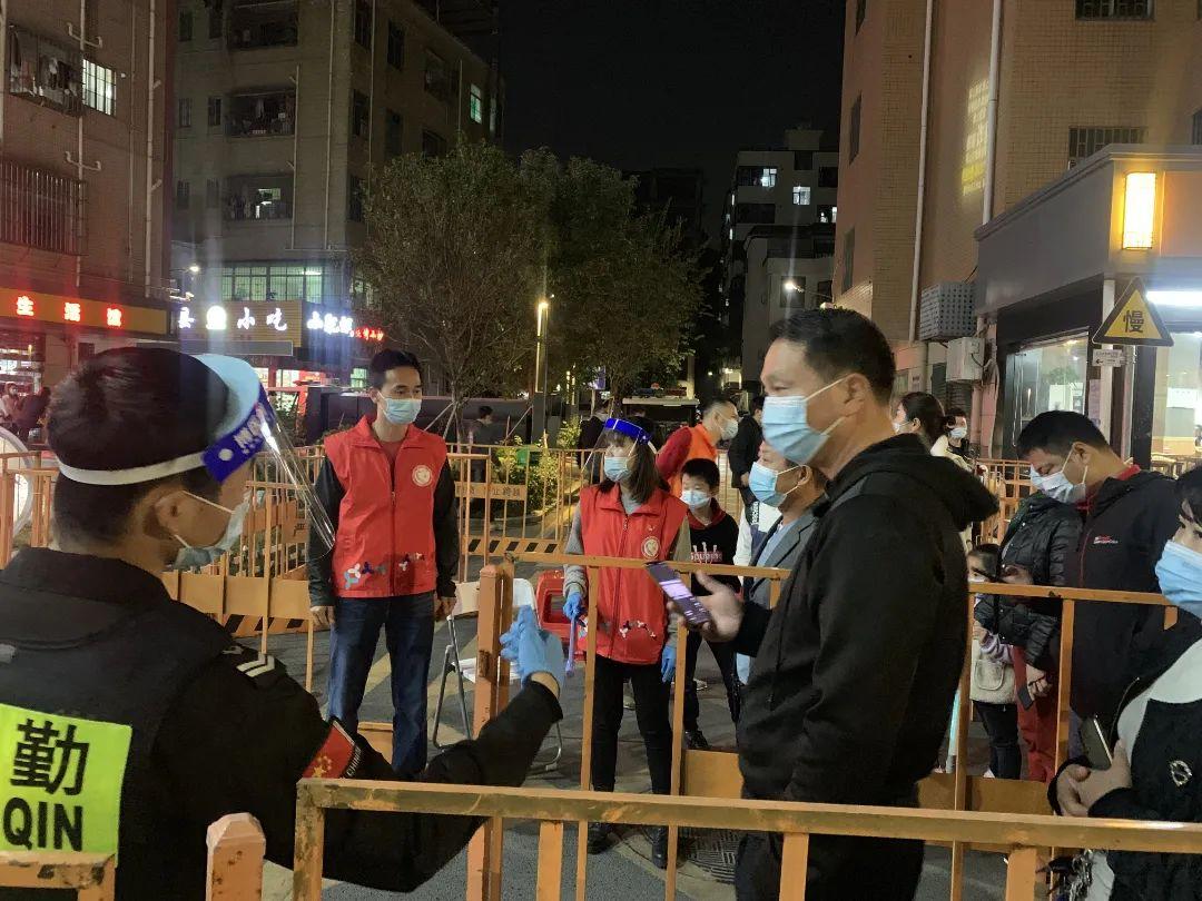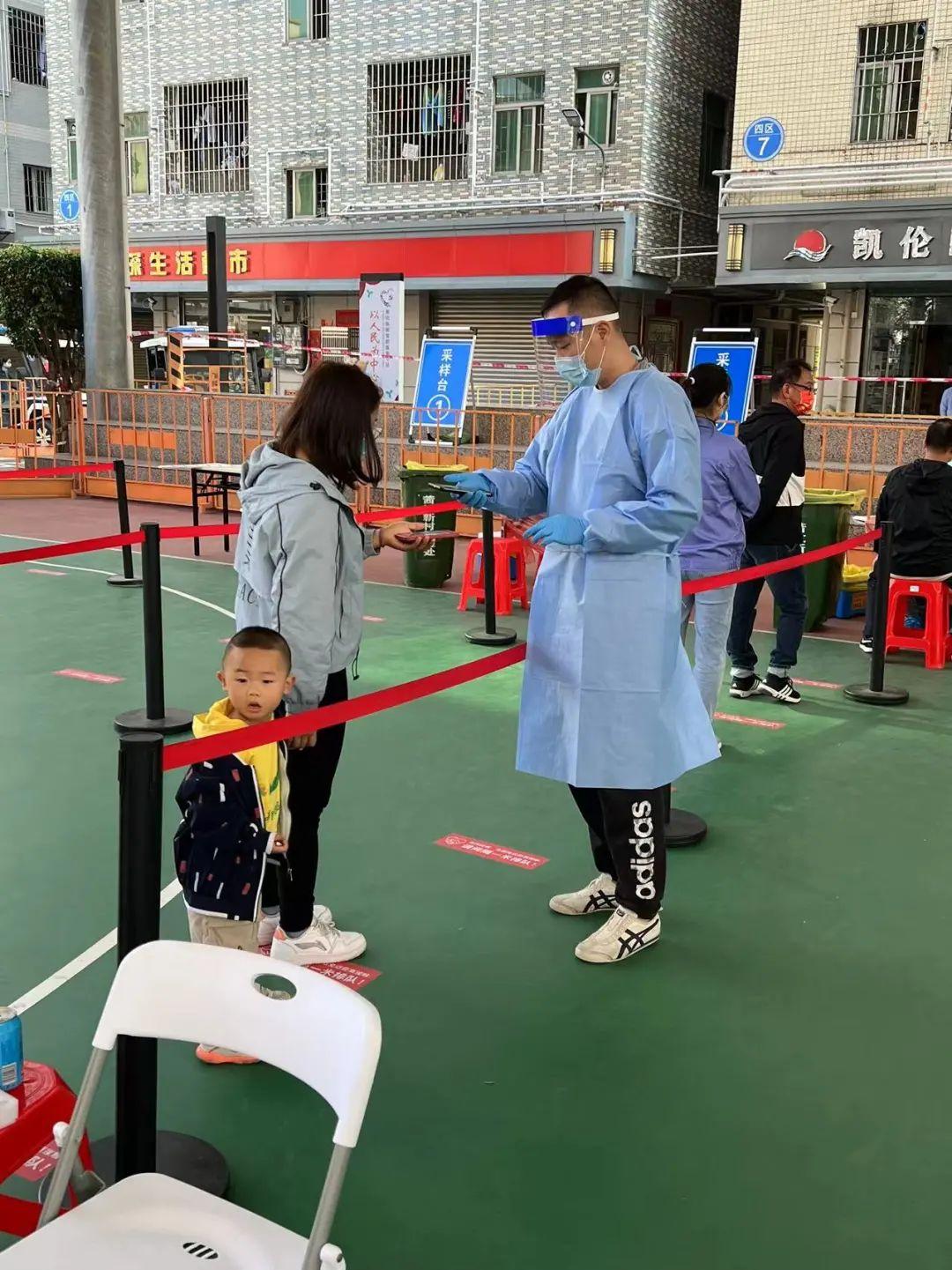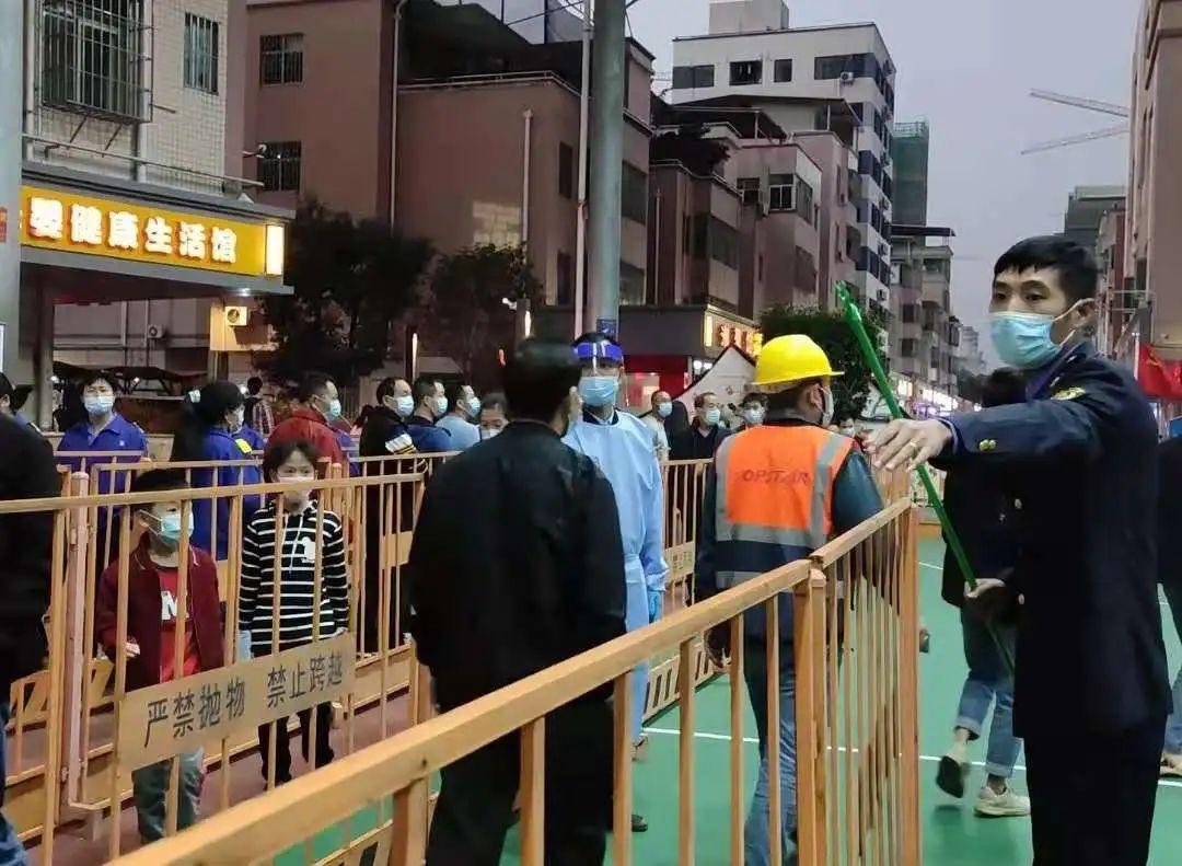 才踏入2022年不久小茜还沉浸在去年那些逆行身影的感动之中没想到疫情再次席卷而来他们的身影又一次出现在眼前但这一次他们更加坚定与从容1月8日,街道党工委副书记、办事处主任王东华同志,党委委员韩波同志,执法队大队长詹小波同志到茜坑新村核酸检测点指导核酸检测工作。社区党委委员庄建明同志从福城大地块项目赶来支援,与社区一起战斗。快与时间赛跑,与疫情搏击快一点,再快一点为了尽快搭建核酸检测场地他们一趟又一趟的搬运重物手酸了就甩一甩又立马扛起“千斤重”争分夺秒的为居民搭起生命屏障一群人,一条心仅仅两个小时就搭建好三个点的铁马他们用行动诠释着社区速度与效率稳急而不乱,紧张有序场地刚刚搭建好消杀组立马做好入场准备面对党旗这一战定将全力以赴虽然看不见他们的样子但他们转身奔赴的身影牢牢映在脑海拿起“大声公”“请大家保持一米的间隔距离排好队准备好粤核酸码、行程码、健康码”重复的话说再多遍也不嫌烦他们温柔、耐心的话语让人心安“大叔,我来帮你操作”口罩虽然遮住了居民的面容但是他们眼中闪烁着感动、满足的星光队伍再长他们没有一丝一毫的不耐烦在人群中他们认真回答每一位居民的疑