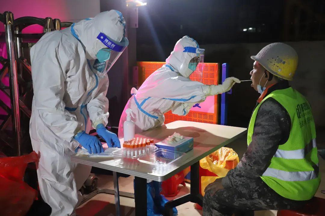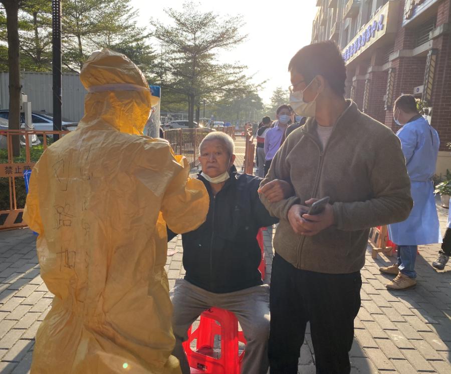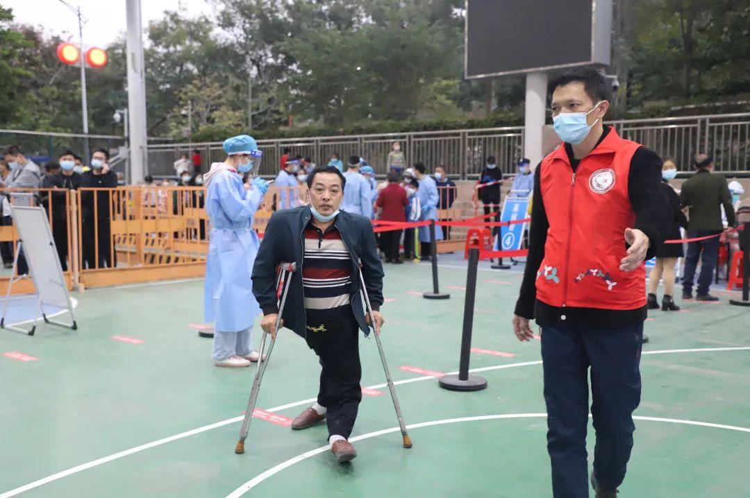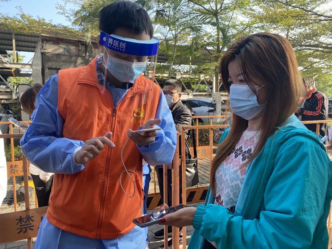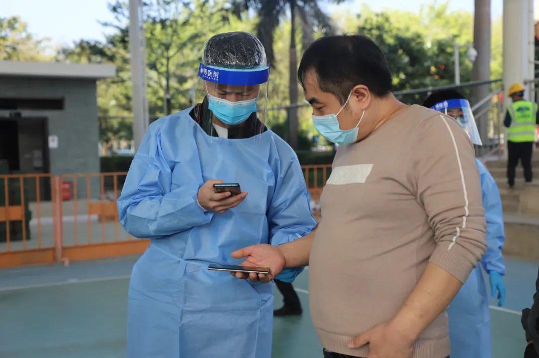 才踏入2022年不久小茜还沉浸在去年那些逆行身影的感动之中没想到疫情再次席卷而来他们的身影又一次出现在眼前但这一次他们更加坚定与从容1月8日,街道党工委副书记、办事处主任王东华同志,党委委员韩波同志,执法队大队长詹小波同志到茜坑新村核酸检测点指导核酸检测工作。社区党委委员庄建明同志从福城大地块项目赶来支援,与社区一起战斗。快与时间赛跑,与疫情搏击快一点,再快一点为了尽快搭建核酸检测场地他们一趟又一趟的搬运重物手酸了就甩一甩又立马扛起“千斤重”争分夺秒的为居民搭起生命屏障一群人,一条心仅仅两个小时就搭建好三个点的铁马他们用行动诠释着社区速度与效率稳急而不乱,紧张有序场地刚刚搭建好消杀组立马做好入场准备面对党旗这一战定将全力以赴虽然看不见他们的样子但他们转身奔赴的身影牢牢映在脑海拿起“大声公”“请大家保持一米的间隔距离排好队准备好粤核酸码、行程码、健康码”重复的话说再多遍也不嫌烦他们温柔、耐心的话语让人心安“大叔,我来帮你操作”口罩虽然遮住了居民的面容但是他们眼中闪烁着感动、满足的星光队伍再长他们没有一丝一毫的不耐烦在人群中他们认真回答每一位居民的疑