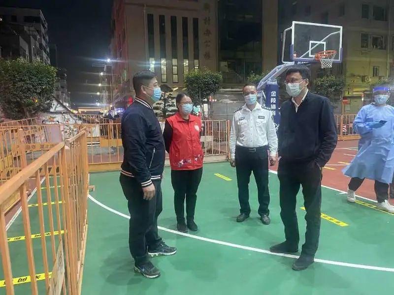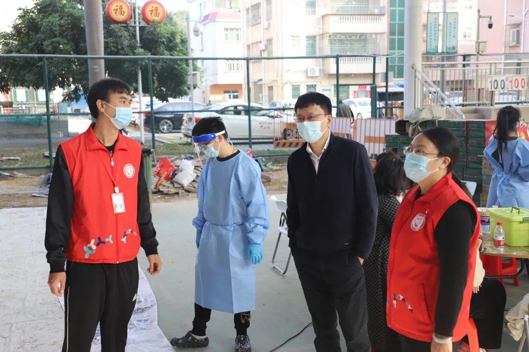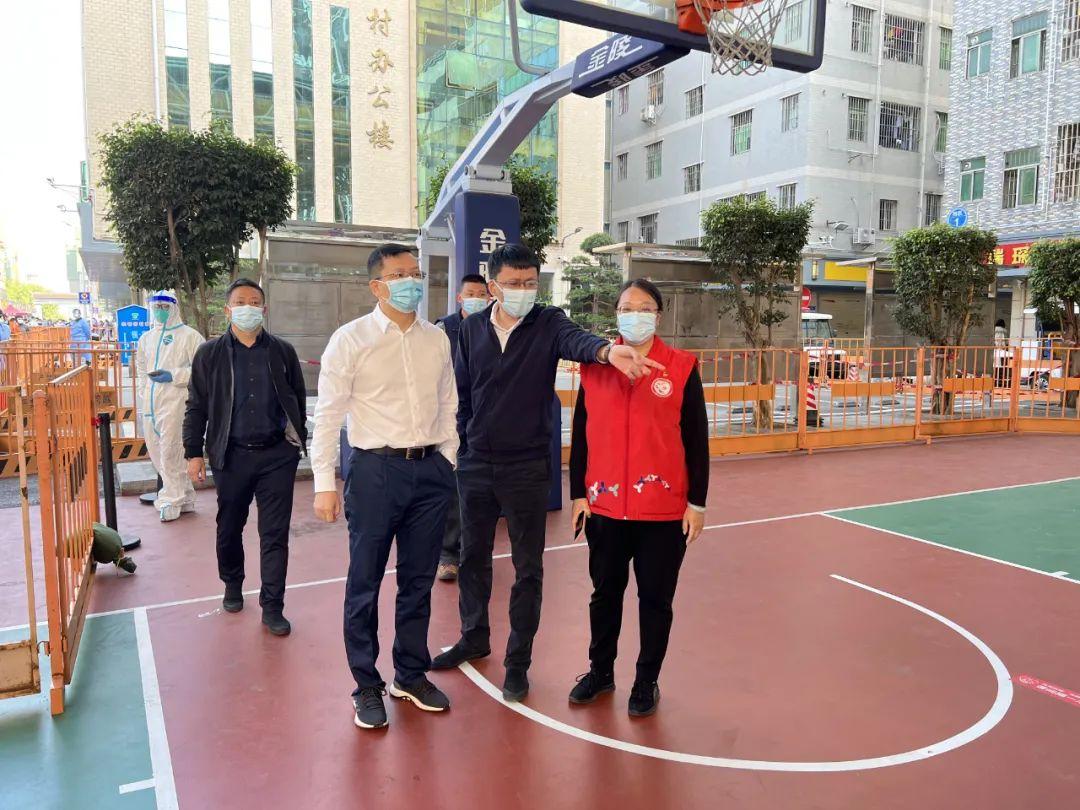 1月8日,街道党工委副书记、办事处主任王东华同志,党委委员韩波同志,执法队大队长詹小波同志到茜坑新村核酸检测点指导核酸检测工作。