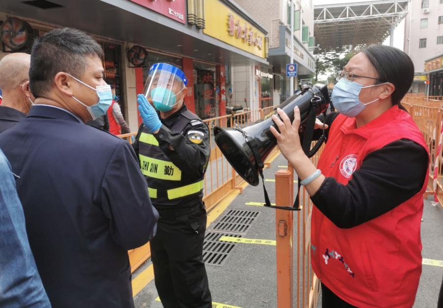 社区党委委员庄建明同志从福城大地块项目赶来支援,与社区一起战斗。