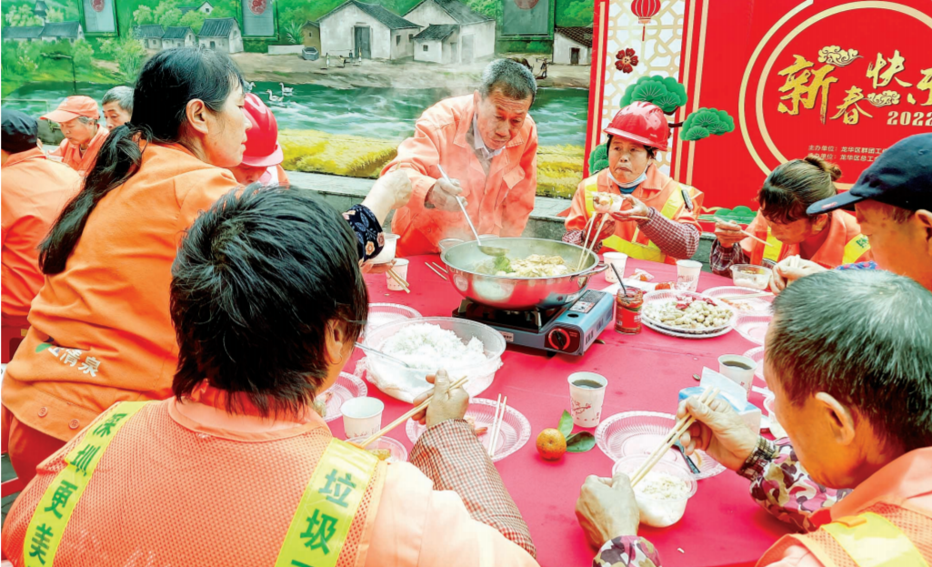 “今年又是一个特殊的新年,很多居民仍选择就地过年,环卫工作也面临更多考验。”社区相关负责人介绍到,社区的环卫工一直坚守在清洁岗位,为社区疫情防控和环境治理做出非常大的付出,值此新春佳节来临之际,希望通过“团圆饭”将社区温暖与真切关怀送到每一名勤劳的奋斗者心中。