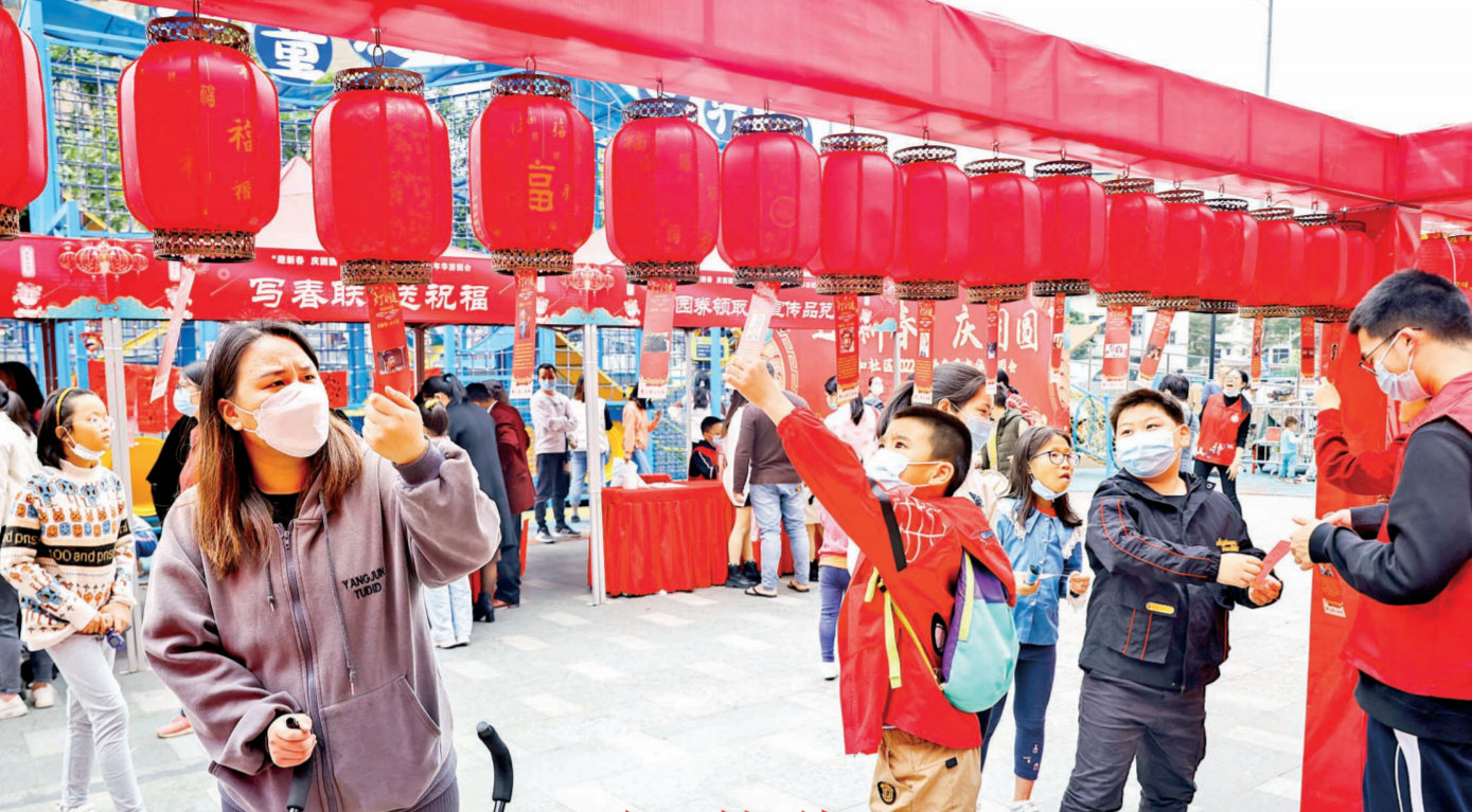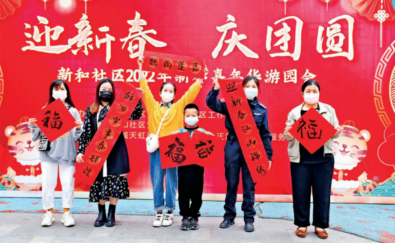 1月24日,福城新和社区举办新春嘉年华游园会,市民猜灯谜,营造浓浓的春节氛围。