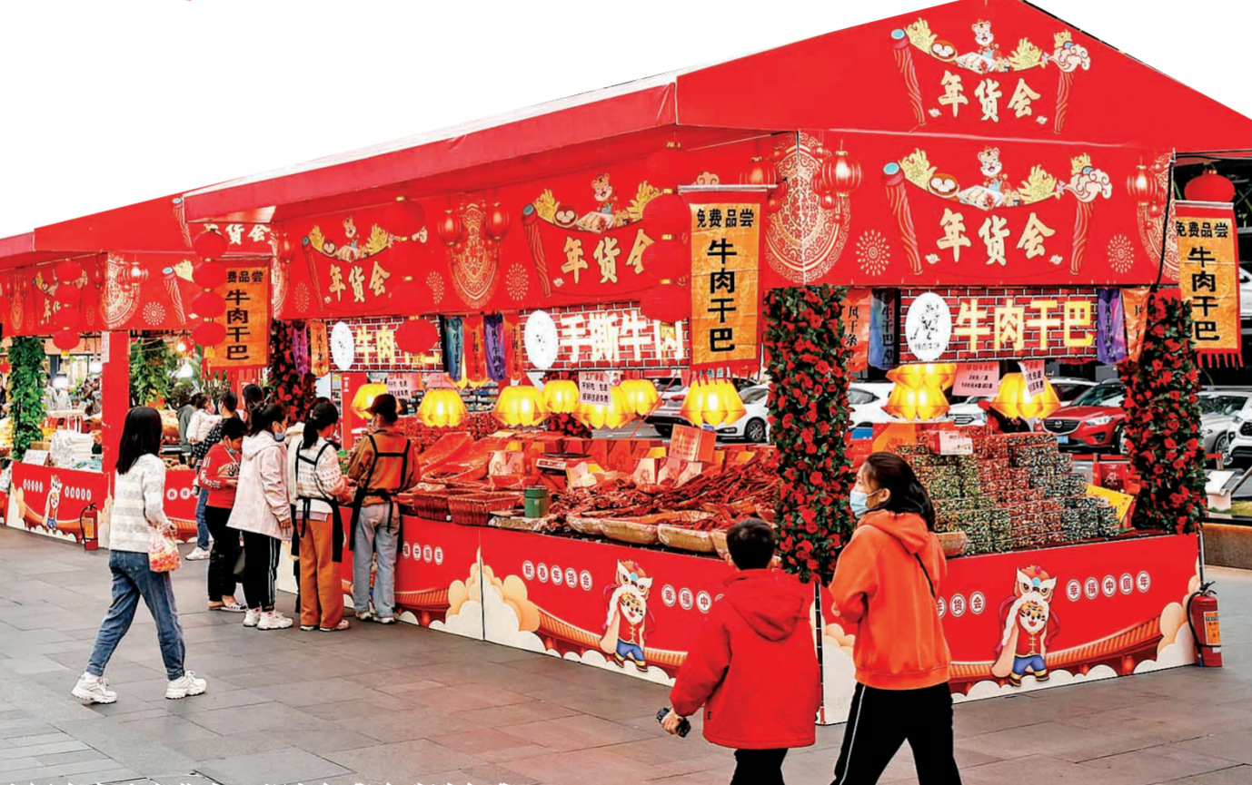 行过花街才是年。1月25日,龙华区迎春购花点正式面向市民开售,六街道设置120个购花点,各类年花年桔、特色网红年货供市民选购,一起在大城市里寻找温暖的年味儿。与此同时,龙华大型商超推出新春年货会、年货街,灯笼、红包、中国结等琳琅满目的年货吸引不少市民前来选购,呈现了欢乐祥和、“年味”十足的节日气氛。