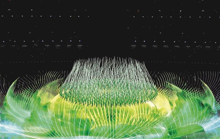 地屏、冰瀑、冰立方、南北看台屏和播放系统等多个显示屏装置,整体显示一幅完整的画面,再配合演员、视效、灯光和舞美,让世界各国观众再一次被震撼。记者从地屏提供方利亚德方面获悉,本次鸟巢超大地屏首次采用全LED影像取代传统的地屏投影,画质达到16K。开幕式画面为14000分辨率的巨幕,画面要求为1秒钟50帧,开幕式一个节目就含有几个T的数字内容,这对于清晰度和细节的要求均呈几何级增长,对科技升级、美学升级都提出了更高标准,在全球来讲都属于前所未有的挑战,成为一个非常大的数字科技工程。